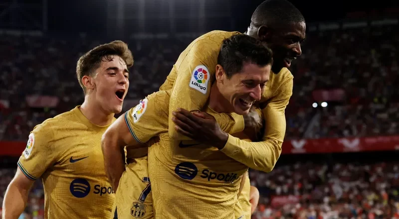 سجل روبرت ليفاندوفسكي هدفه الخامس في أربع مباريات بالدوري الإسباني لكرة القدم ليساهم في فوز برشلونة 3-صفر على إشبيلية.