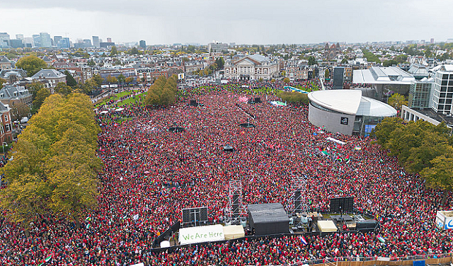 مئات آلاف المتظاهرين يحتشدون في أمستردام دعما لغزة وضد الإبادة والاحتلال الإسرائيلي