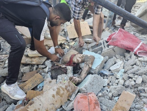 وكان 11 مواطنا معظمهم من الأطفال ارتقوا في قصف مدفعي فجرا على منزل لعائلة القرا بقرية خزاعة شرق خان يونس.