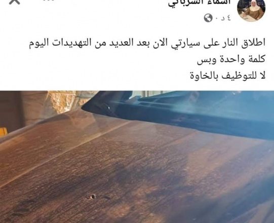 وفي تعقيبها الاولي على الحادثة، نشرت الشرباتي منشورا على صفحتها على موقع الفيسبوك وقالت فيه:” اطلاق النار على سيارتي الان بعد العديد من التهديدات اليوم”.