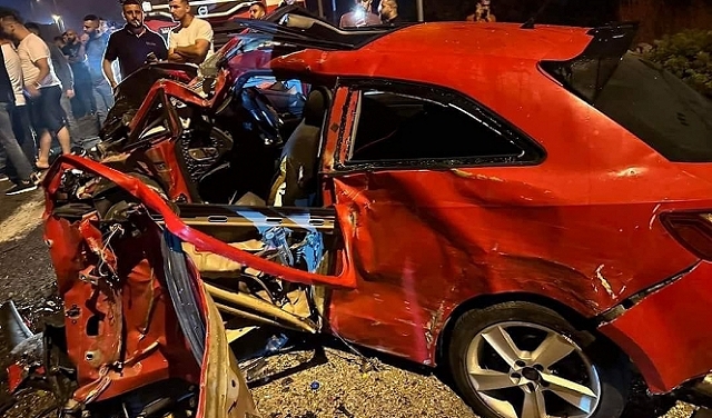 فيما أُصيب عدد من الشبان بجراح منها خطيرة بحادث السير المروع الذي وقع سيارتين.