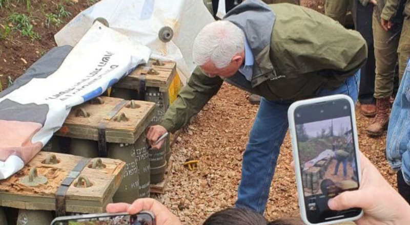 زار نائب الرئيس الأمريكي السابق مايك بنس جنودا إسرائيليين على الحدود الشمالية، ووقع على قذائف مدفعية ستطلق على لبنان.