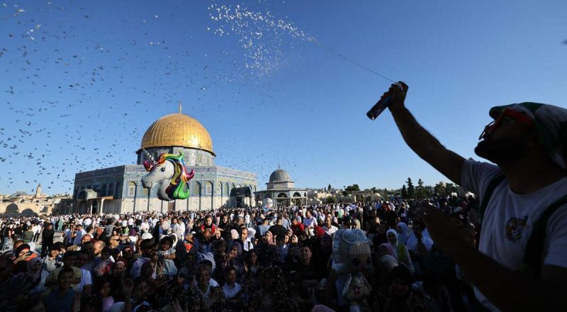 من فرحة الفلسطينيين بعيد الأضحى .. تصوير: “الفرنسية”