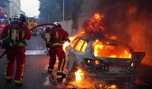 وفي وقت لاحق من مساء الثلاثاء، أشعل متظاهرون النيران في شوارع نانتير، واحرقوا سيارة، وحطموا مواقف حافلات مع تصاعد التوتر بين الشرطة والسكان.