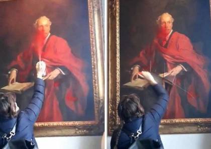 ناشطة تتلف صورة صاحب وعد بلفور بجامعة كامبريدج