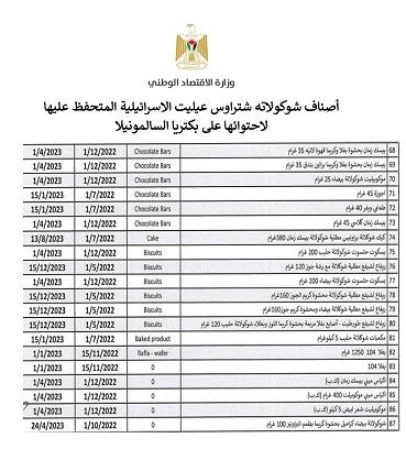 نشر قوائم أصناف منتجات شركة “شتراوس” لاحتوائها على بكتيريا السالمونيلا وتحذير من استهلاكها