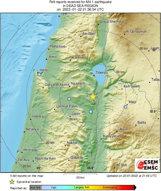 وبحسب صحيفة يديعوت احرنوت شعر السكان بالزلزال فيما لم يتم الإبلاغ عن إصابات أو أضرار.