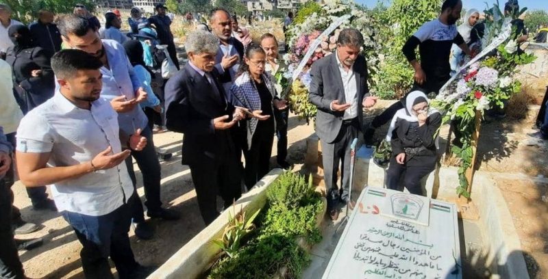 وضع أكليل من الزهور على أضرحة الشهداء في مخيم اليرموك