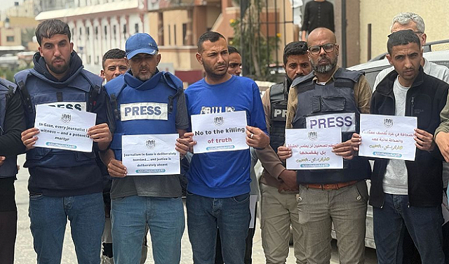أغلقت إسرائيل أيضًا غزة أمام المراسلين الأجانب، لكنها سمحت لبعض المراسلين بمواكبة جنودها لفترات وجيزة. وتعتمد كبرى وسائل الإعلام الأجنبية على طواقم من الصحافيين الفلسطينيين من غزة، أُنهكوا من عمليات القصف المستمرة منذ عشرين شهرًا، بينما تمكّن آخرون من مغادرة القطاع، ويقومون بتغطية الوضع عن بُعد، بدعم من أفراد موجودين على الأرض.
