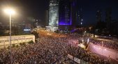 مدار نيوز \ تظاهر عشرات الآلاف في تل أبيب بالإضافة إلى المئات قبالة الفندق الذي يلتقي فيه نتنياهو وليفين في