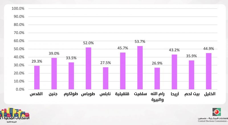 أعلنت لجنة الانتخابات المركزية، أن نسبة الاقتراع في الانتخابات المحلية “المرحلة الثانية”، بلغت 39% حتى الساعة الرابعة عصراً.