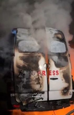 وارتكب الاحتلال مجزرة بحق العاملين في الإعلام الفلسطيني وقصف حافلة للبث المباشر تتبع لفضائية القدس اليوم ما اسفر عن استشهاد خمسة من العاملين فيها .