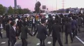 مدار نيوز \ أغلق متظاهرون من الحريديم، اليوم الإثنين، شارع 4 في منطقة بني براك وسط إسرائيل، احتجاجا على قانون