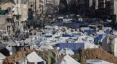 غزة \ مدار نيوز \ مواطنون ينصبون خياما على أنقاض المنازل المدمرة في مدينة غزة بعد نزوحهم قسرا من شمال القطاع