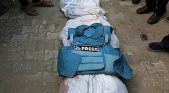 غزة \ مدار نيوز \ استشهد الصحفي، محمد جاسر، وزوجته وطفلاه ووالدته المقعدة، السبت، في قصف طائرة حربية إسرائيلية استهدفت