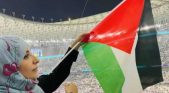 مدار نيوز \ رفعت الناشطة الحقوقية الحائزة على جائزة نوبل للسلام توكل كرمان، علم فلسطين أثناء المباراة التي جرت بين