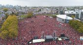 مدار نيوز \ وكالات \ احتشد عشرات آلاف الأشخاص اتّشحوا بالأحمر الأحد في أمستردام للمطالبة بإنهاء الحرب في غزة على