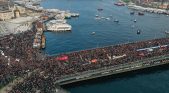 مدار نيوز \ التقى عشرات الآلاف من المواطنين الأتراك، صباح أمس الاثنين، فوق جسر غلاطة بمدينة إسطنبول تضامنا مع قطاع