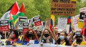 مدار نيوز \ تجمع آلاف النشطاء في وسط مدينة واشنطن يوم السبت للمشاركة في تظاهرة مؤيدة للفلسطينيين وطوقوا البيت الأبيض،