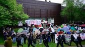 مدار نيوز \ تحدّى طلاب متضامنون مع الفلسطينيين في جامعة جورج واشنطن في العاصمة الأمريكية الشرطة الأمريكية، وأقاموا مخيما في