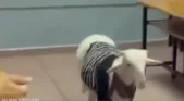 مدار نيوز \ في مشهد طريف وثقته كاميرات الهواتف المحمولة دخل حمل وديع إلى أحد مراكز اقتراع الانتخابات الرئاسية التركية.